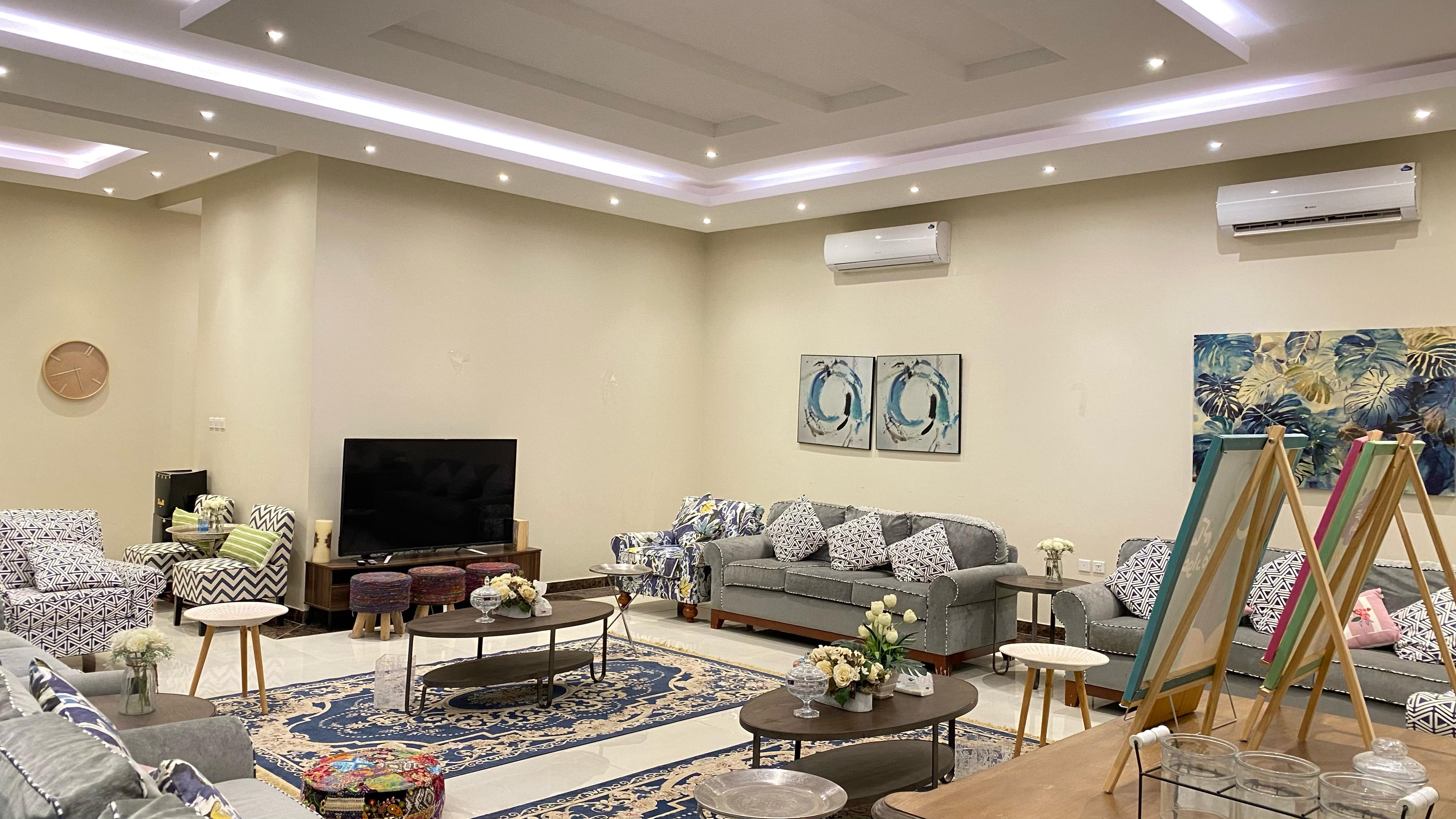 تفاصيل الاستراحة : • 1 مجلس كبير يتسع لي 20 شخص *1 غرفة خادمة و دورة مياه *2 صاله واسعة *1صالة طعام تتسع لي ١٨ شخص *1 مطبخ يفتح على صالتين *1 مجلس خارجي يتسع لي 20 شخص *1 دوراة مياه و مغاسل خارجية * 1 جلسة خارجية مميزات الاستراحة : * مكيفات راكبة *مطبخ راكب *حوش خاص *نوافذ واسعة *موثثة بالكامل *هدوء و خصوصية لي من له رغبه في الاستثمار او الإيجار يتواصل معنا
