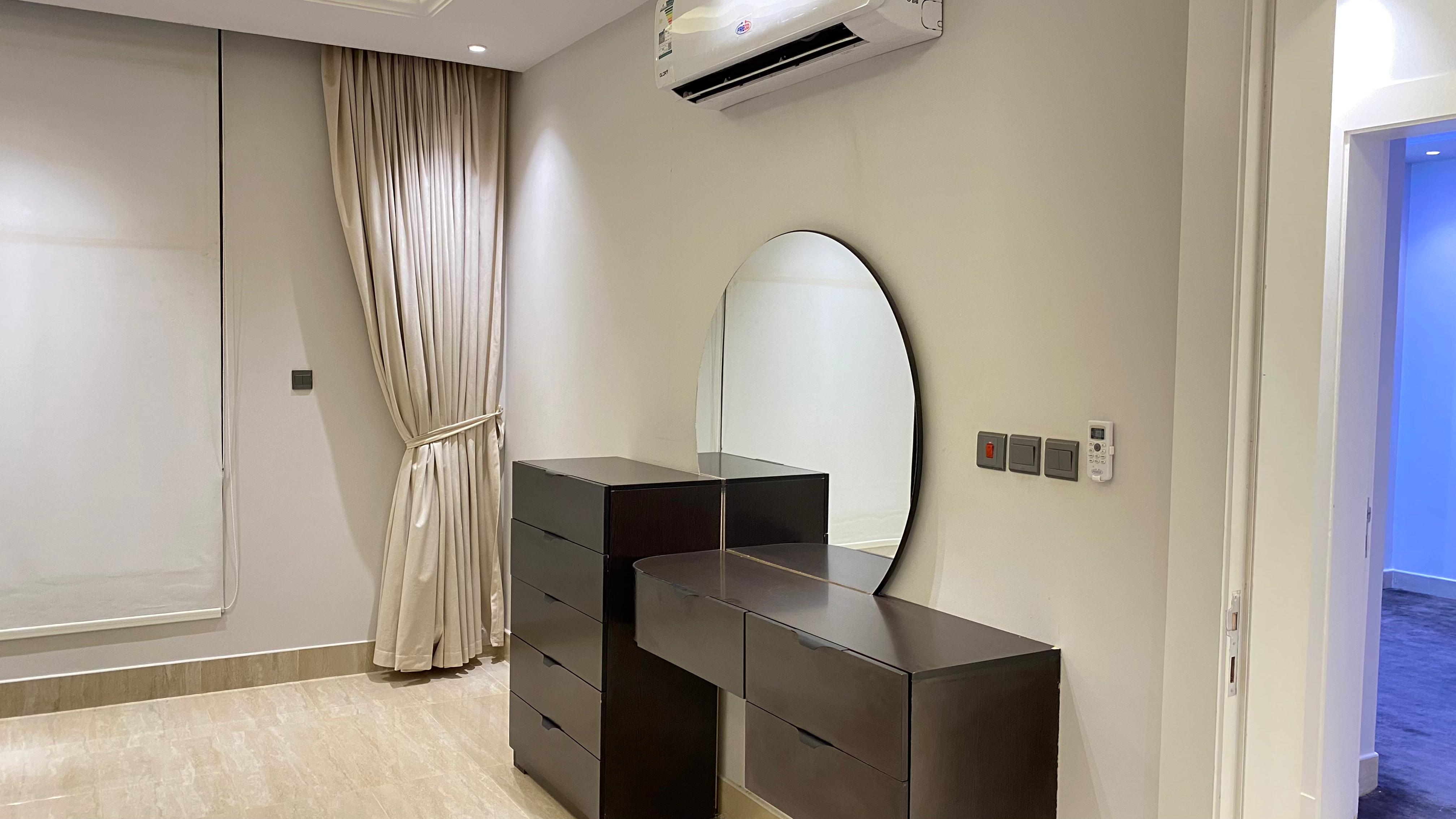 تفاصيل الوحدة : 3 غرف واحده ماستر 1 صالة مجلس مفصول 3 دورات مياه مطبخ راكب مغلق غرفة غسيل مميزات الوحدة: مفتاح ذكي يفتح برمز سري 6 مكيفات سبيلت (راكب) مطبخ راكب مغلق بقزاز سطح و جلسة خارجية جميلة